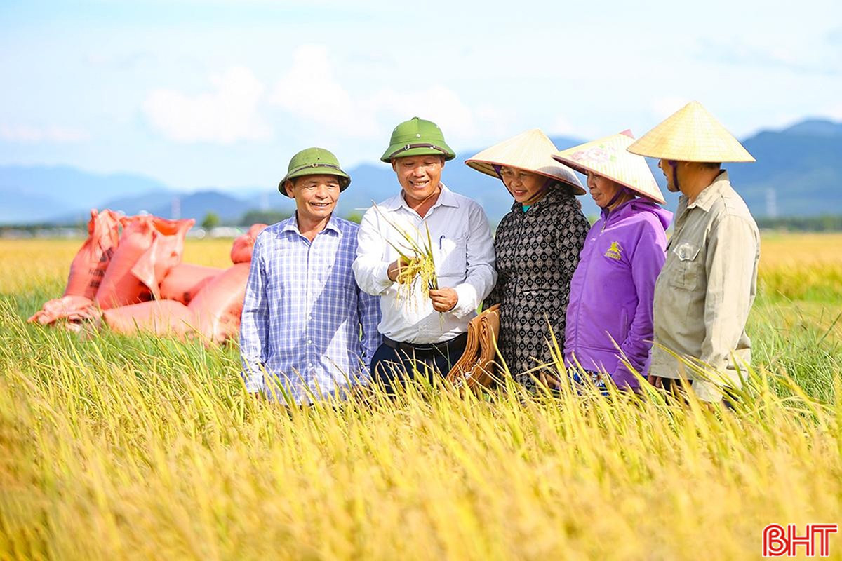 Cán bộ, Nhân dân phấn khởi khi vụ lúa hè thu thắng lợi.