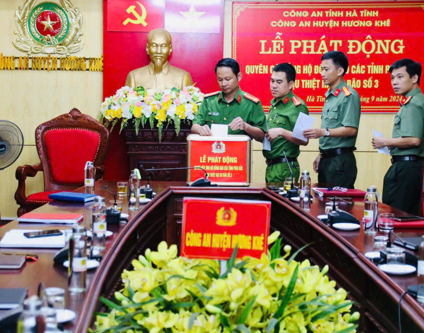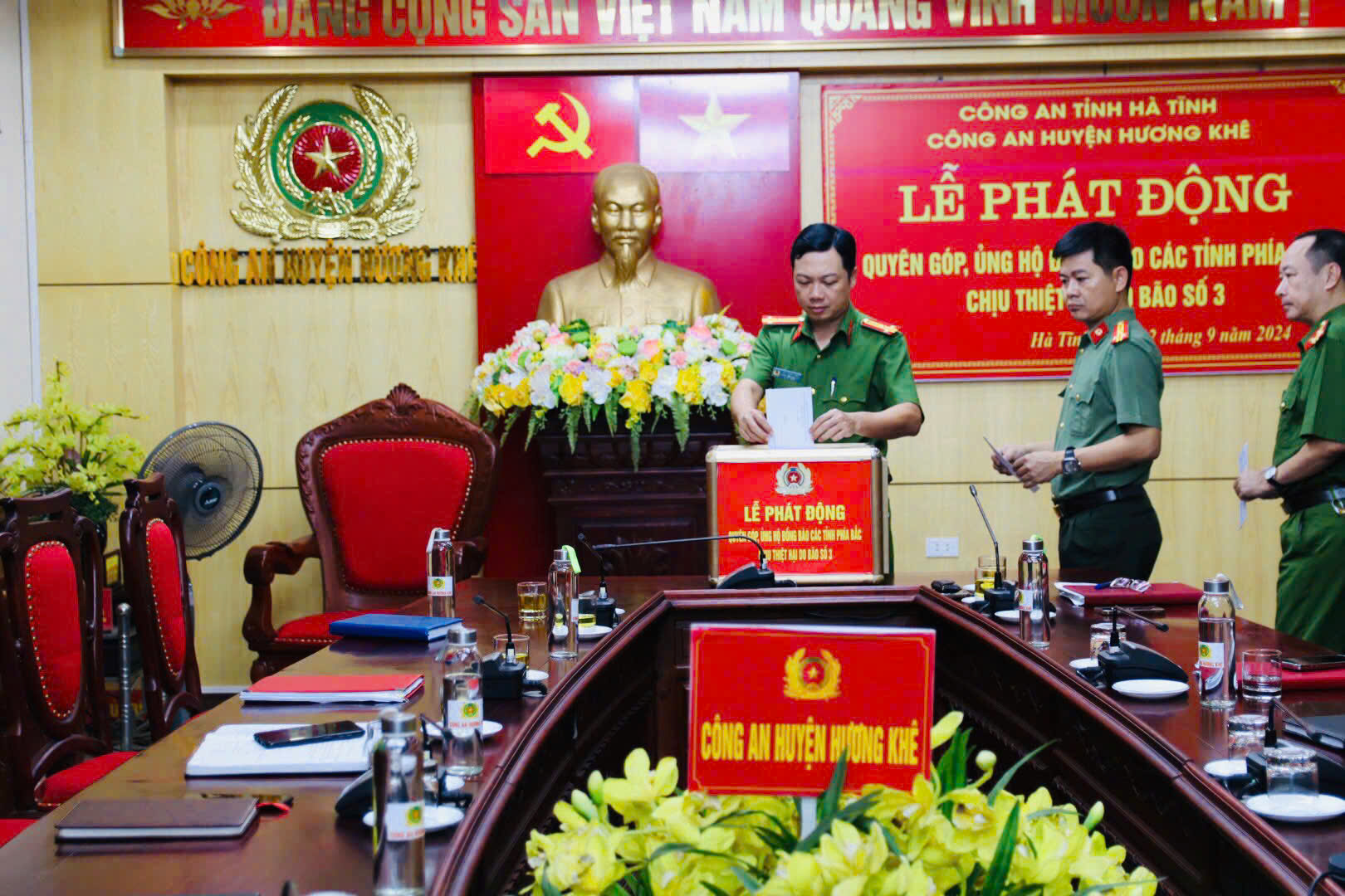 Công an Hương Khê quyên góp, ủng hộ đồng bào bị thiệt hại do bão số 3
