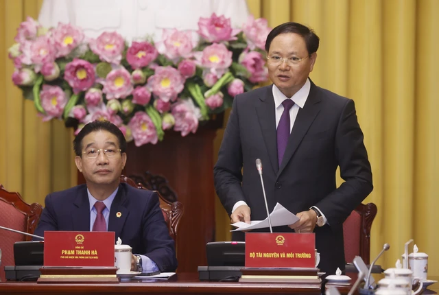 Thứ trưởng Bộ Tài nguyên và Môi trường Lê Minh Ngân giới thiệu về Luật Đất đai. Ảnh: TTXVN