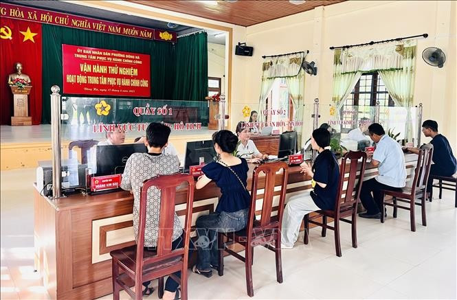 Trung tâm Phục vụ hành chính công của phường Đông Hà (Quảng Trị) ngày đầu tiên vận hành thử nghiệm. Ảnh: Nguyên Linh/TTXVNThực hiện kết luận của Bộ Chính trị, Ban Bí