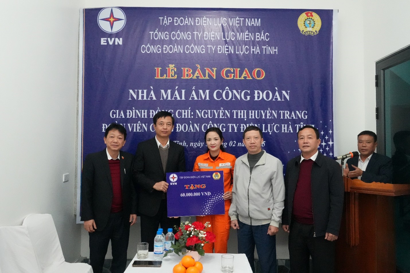 Sáng 03/02, Công đoàn Tổng công ty Điện lực miền Bắc (EVNNPC) phối hợp với Công đoàn CTĐL Hà Tĩnh tổ chức Lễ gắn biển “Mái ấm Công đoàn” cho đoàn viên có hoàn cảnh khó khăn.