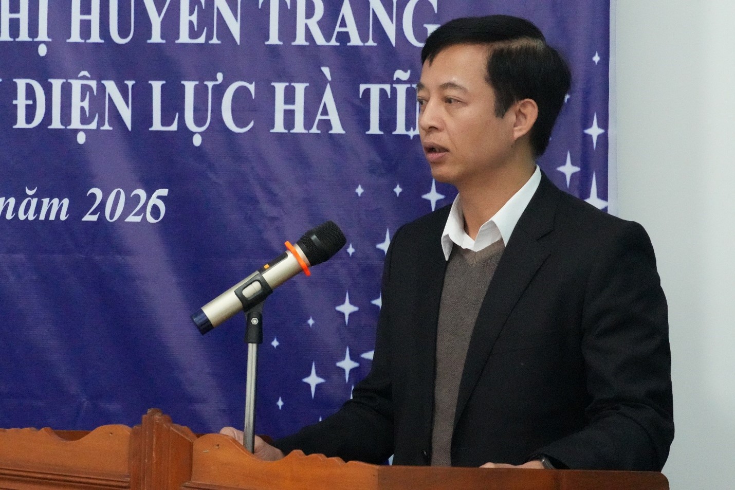 Phó Chủ tịch Công đoàn EVNNPC Nguyễn Ngọc Lương phát biểu tại buổi gắn biển "Mái ấm Công đoàn" tại Hà Tĩnh.