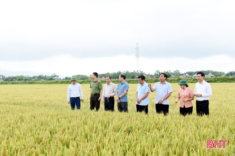 Trong chuyến công tác, Bí thư Tỉnh ủy Hoàng Trung Dũng cũng đã đi kiểm tra tình hình thu hoạch lúa xuân ở thôn Hòa Hợp, xã Kỳ Văn.
