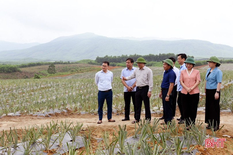 ...thăm mô hình trồng dứa ở xã Kỳ Tân.