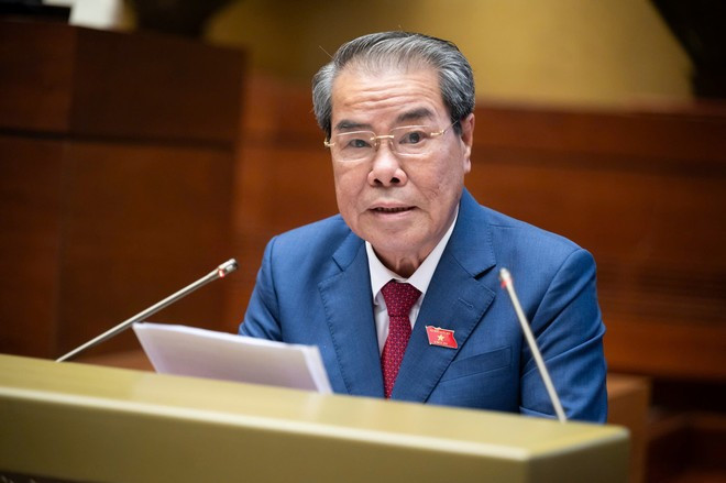 Chủ tịch Ủy ban Trung ương Mặt trận Tổ quốc Việt Nam Đỗ Văn Chiến trình bày báo cáo. (Ảnh: QH/Vietnam+)
