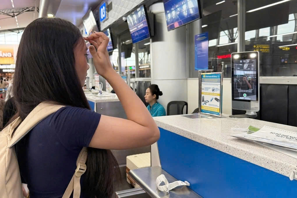 Một hành khách làm thủ tục bay qua máy quét khuôn mặt tại sân bay. Ảnh: C06