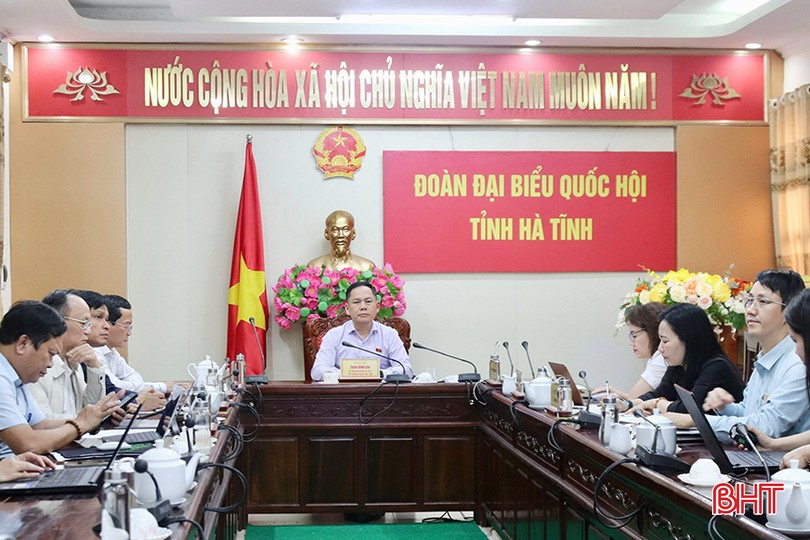 Phó Trưởng đoàn chuyên trách Đoàn ĐBQH tỉnh Trần Đình Gia điều hành điểm cầu Hà Tĩnh. Phó Chủ tịch HĐND tỉnh Trần Văn Kỳ cùng dự.
