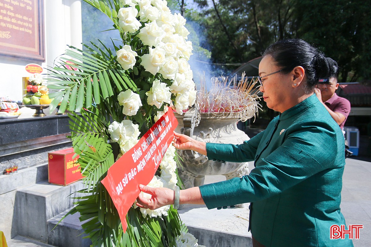 Dịp này, Đại sứ Đặc mệnh toàn quyền nước CHDCND Lào tại Việt Nam Khăm-Phâu Ân-Thạ-Văn và đoàn công tác đã tới dâng hương, dâng hoa tại Khu di tích Ngã ba Đồng Lộc (Can Lộc).