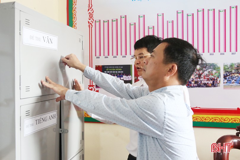 Năm nay, tại điểm thi Trường THPT Hà Huy Tập có 582 thí sinh, trường bố trí 25 phòng thi, 79 cán bộ, giáo viên, nhân viên thực hiện nhiệm vụ coi thi và đảm bảo an toàn cho kỳ thi. Điểm thi tại Trường THPT Kỳ Lâm có 426 thí sinh, trường bố trí 18 phòng thi, 60 cán bộ, giáo viên, nhân viên coi thi và đảm bảo an toàn. Điểm thi tại Trường THPT Kỳ Anh có 753 thí sinh, trường bố trí 32 phòng thi, 98 cán bộ, giáo viên, nhân viên coi thi và đảm bảo an toàn.
