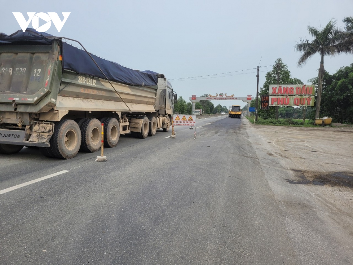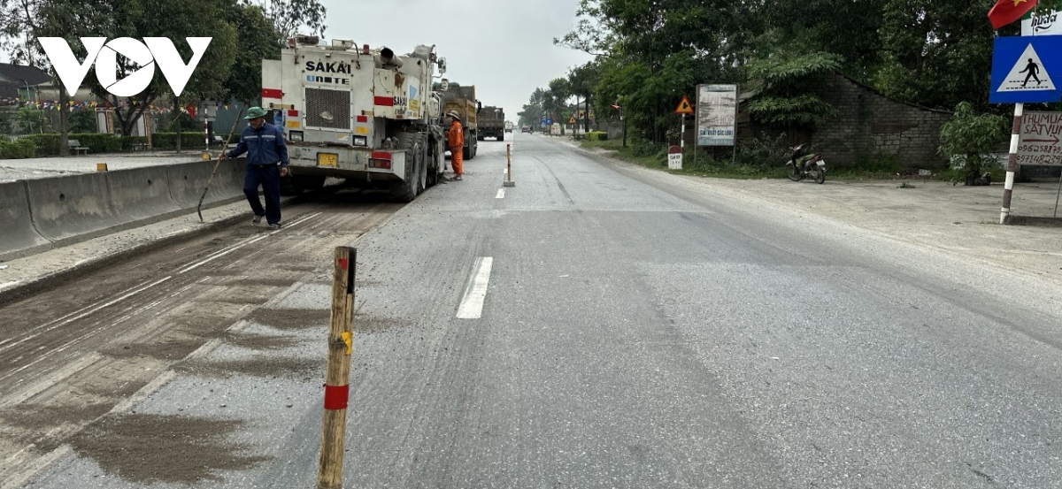 "Việc sửa chữa theo yêu cầu tại Quốc lộ 1 tuyến tránh TP Vinh và Quốc lộ 1 đoạn Nam cầu Bến Thủy - Bắc tuyến tránh TP Hà Tĩnh đến nay khối lượng sửa chữa còn lại gần 60.000m2; trong đó Quốc lộ 1 đoạn Nam cầu Bến Thủy - Bắc tuyến tránh TP Hà Tĩnh khoảng 30.000m2, khối lượng còn lại nằm ở đoạn tuyến qua đường tránh TP Vinh", ông Chung cho biết.