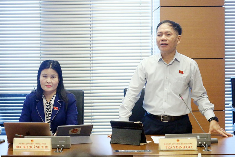 Phó Trưởng đoàn chuyên trách Đoàn ĐBQH tỉnh Hà Tĩnh Trần Đình Gia tham gia thảo luận.