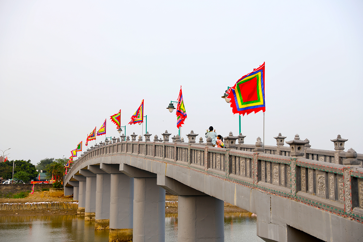 Tại khu vực cầu và bến thả hoa đăng cũng đã được cắm hàng trăm lá cờ hội ở các lối đi.