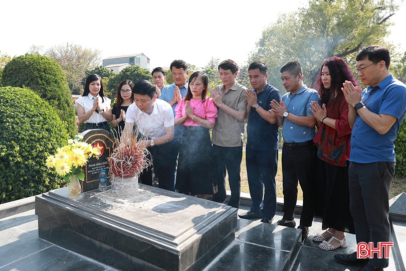 Đoàn công tác Báo Hà Tĩnh kính dâng hương tưởng nhớ Anh hùng liệt sĩ Phan Đình Giót tại Nghĩa trang liệt sĩ A1 (TP Điện Biên Phủ, tỉnh Điện Biên).