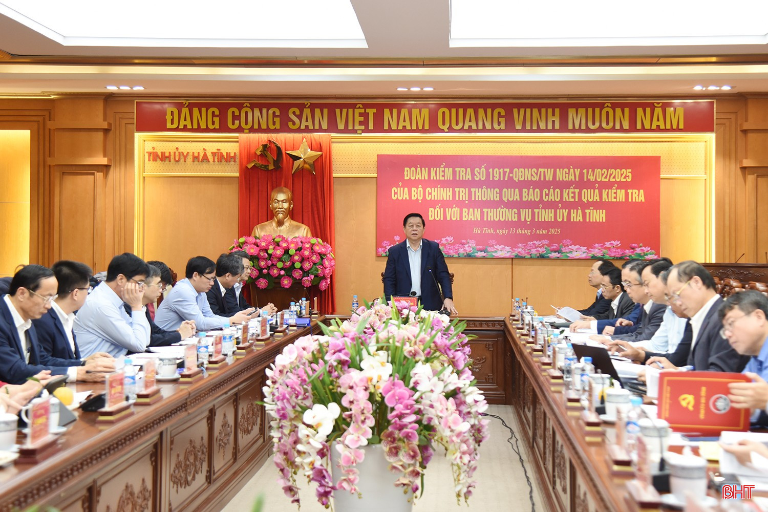 Kết luận buổi làm việc, đồng chí Nguyễn Trọng Nghĩa - Trưởng ban Tuyên giáo và Dân vận Trung ương, Trưởng Đoàn kiểm tra của Bộ Chính trị ghi nhận, đánh giá cao sự quyết tâm, quyết liệt của Ban Thường vụ Tỉnh uỷ Hà Tĩnh trong tập trung lãnh đạo, chỉ đạo, thực hiện nghiêm túc, có hiệu quả các nghị quyết, chỉ thị, kết luận của Trung ương.