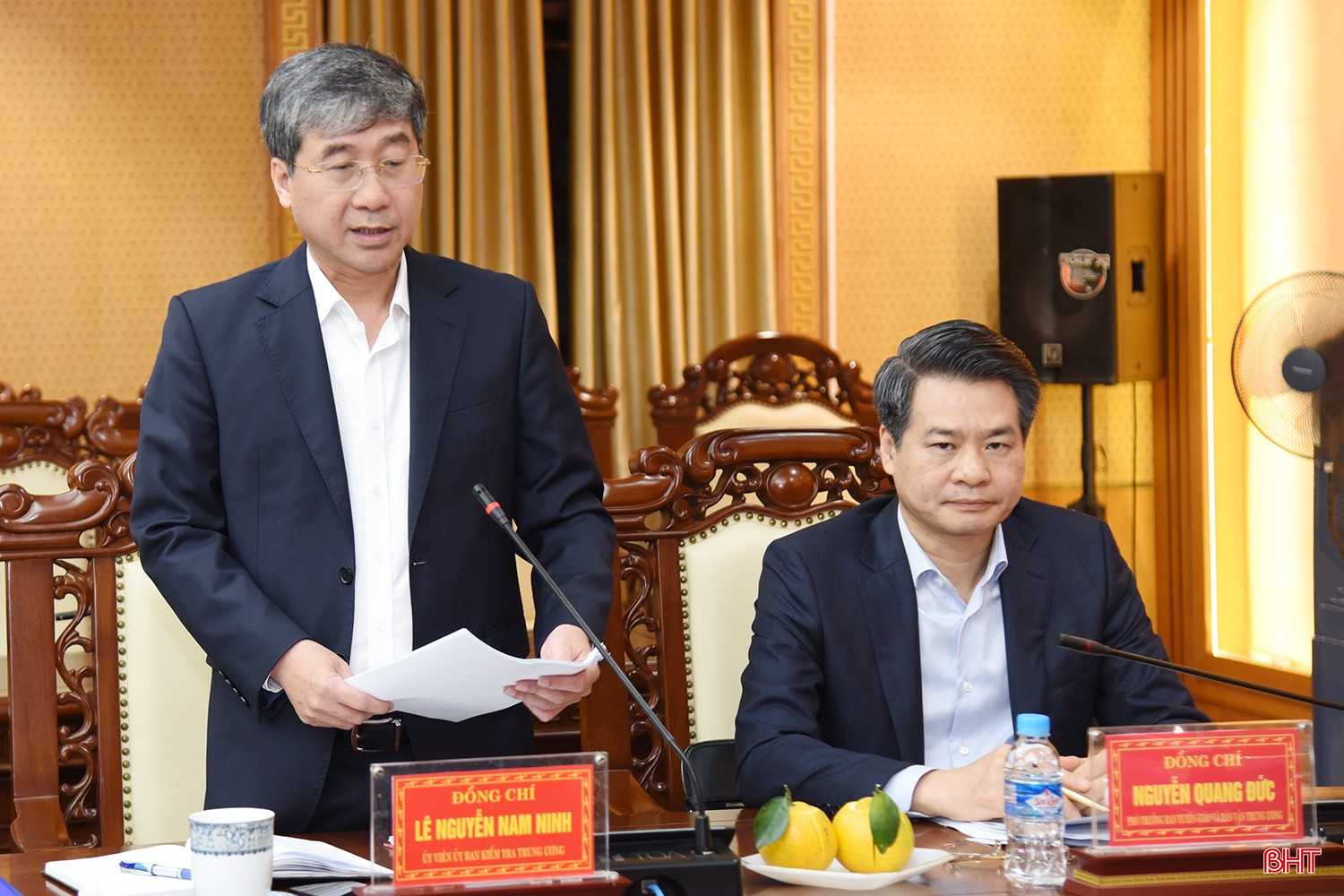 Tại buổi làm việc, đồng chí Lê Nguyễn Nam Ninh - Ủy viên Ủy ban Kiểm tra Trung ương, Phó Trưởng Đoàn kiểm tra đã trình bày dự thảo báo cáo kết quả kiểm tra về việc thực hiện các nghị quyết, chỉ thị, kết luận của Trung ương đối với Ban Thường vụ Tỉnh ủy Hà Tĩnh.