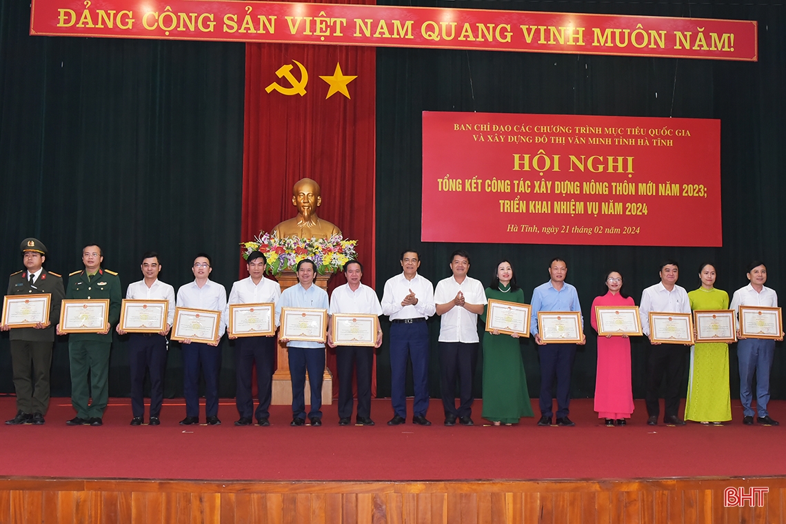 Trên cơ sở các kết quả đạt được, năm 2024, Hà Tĩnh đặt ra các mục tiêu cụ thể như: Duy trì 100% xã đạt chuẩn NTM, có thêm 20 xã đạt chuẩn NTM nâng cao, 5 xã đạt chuẩn NTM kiểu mẫu; phấn đấu 100% huyện, thành phố, thị xã đạt chuẩn/hoàn thành nhiệm vụ xây dựng NTM; các huyện Thạch Hà, Đức Thọ, Can Lộc, Nghi Xuân phấn đấu đạt chuẩn huyện NTM nâng cao; phấn đấu 100% phường, thị trấn đạt chuẩn đô thị văn minh; có tối thiểu 50 sản phẩm đạt chuẩn OCOP, trong đó có ít nhất 5 sản phẩm đạt chuẩn 4 sao trở lên; cơ bản hoàn thành các yêu cầu về tỉnh hoàn thành nhiệm vụ xây dựng NTM.