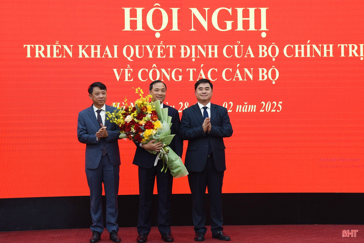 Thường trực Tỉnh ủy Hà Tĩnh tặng hoa chúc mừng đồng chí Hoàng Trung Dũng.