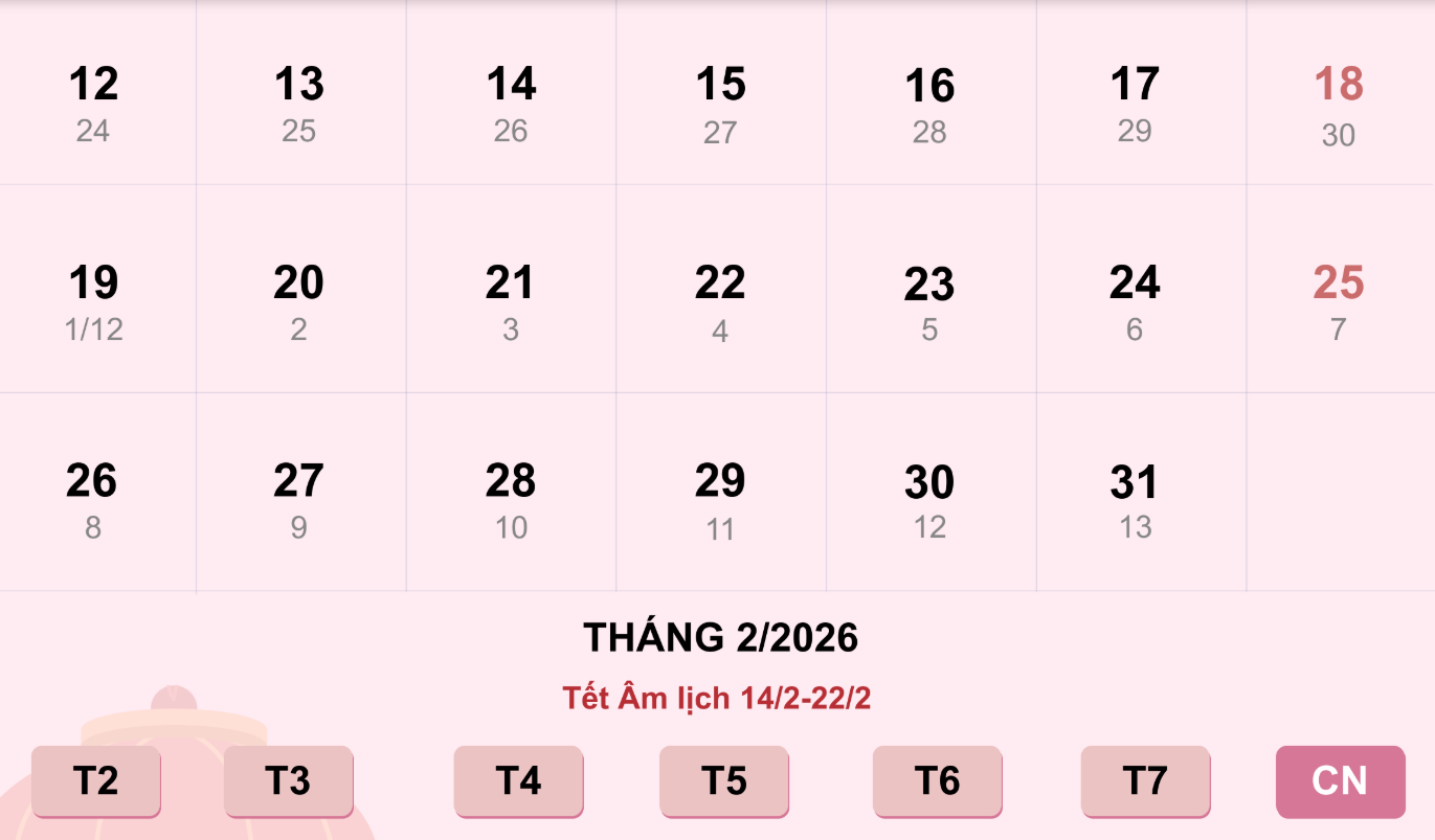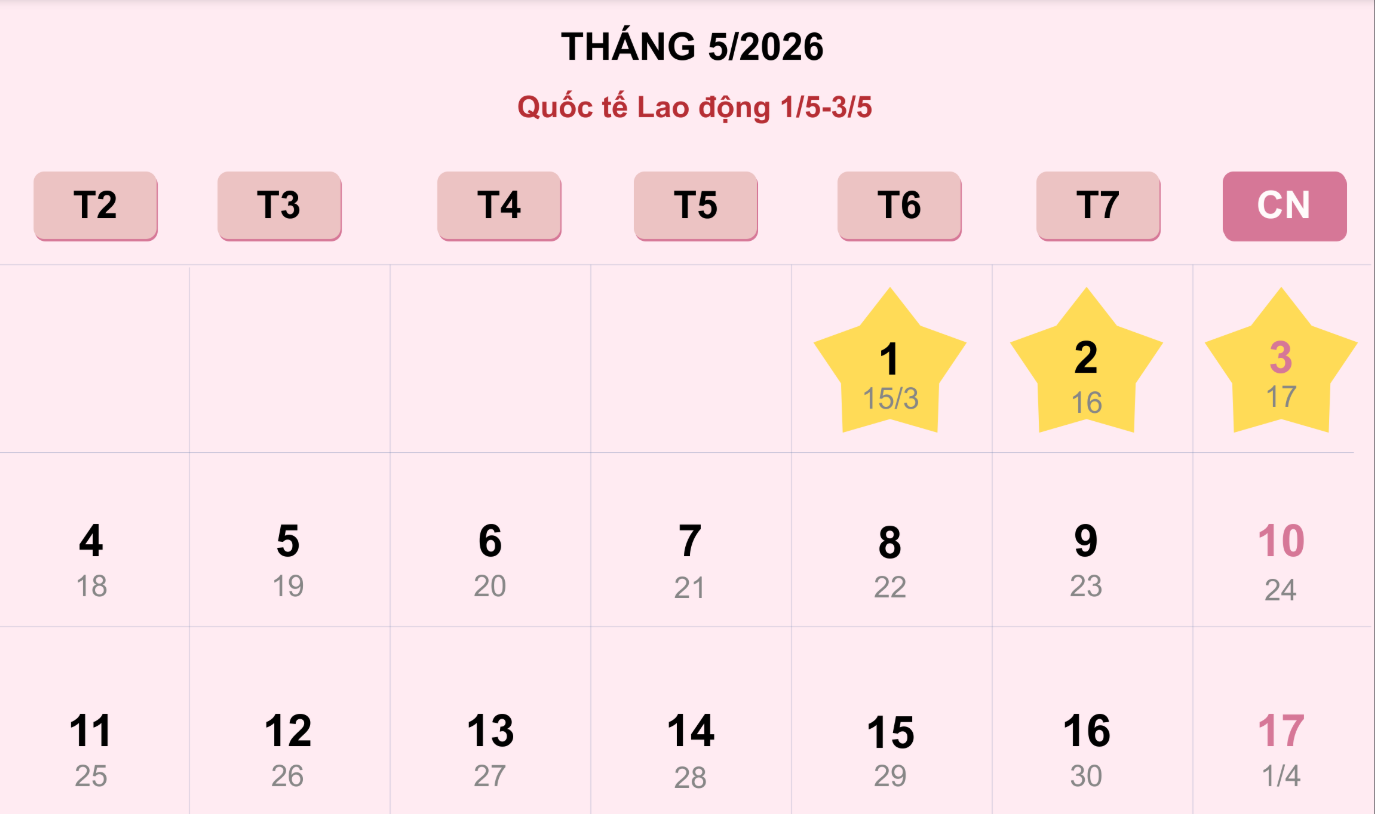 Theo VNELink: https://vnexpress.net/du-kien-22-ngay-nghi-le-tet-nam-2026-4946633.html