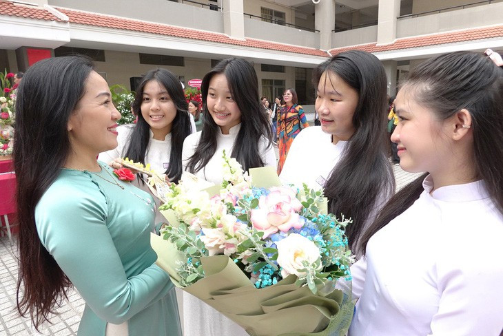 Trong ảnh: cô trò Trường THPT Nguyễn Hữu Thọ, Q.4, TP.HCM - Ảnh: NHƯ HÙNG