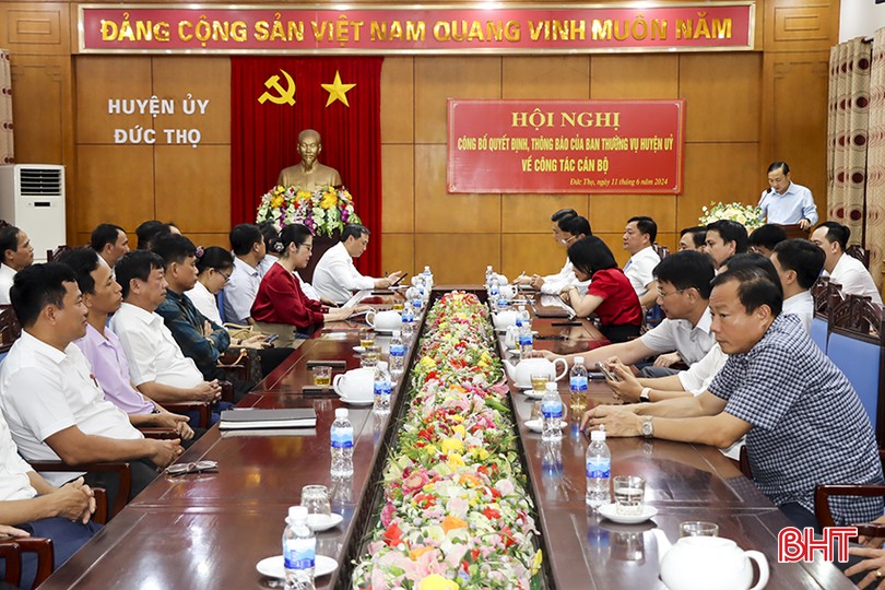 Chiều 11/6, Ban Thường vụ Huyện ủy Đức Thọ tổ chức hội nghị công bố các quyết định về việc luân chuyển, điều động, bổ nhiệm, bố trí cán bộ thuộc diện Ban Thường vụ Huyện ủy quản lý đợt 1 năm 2024.