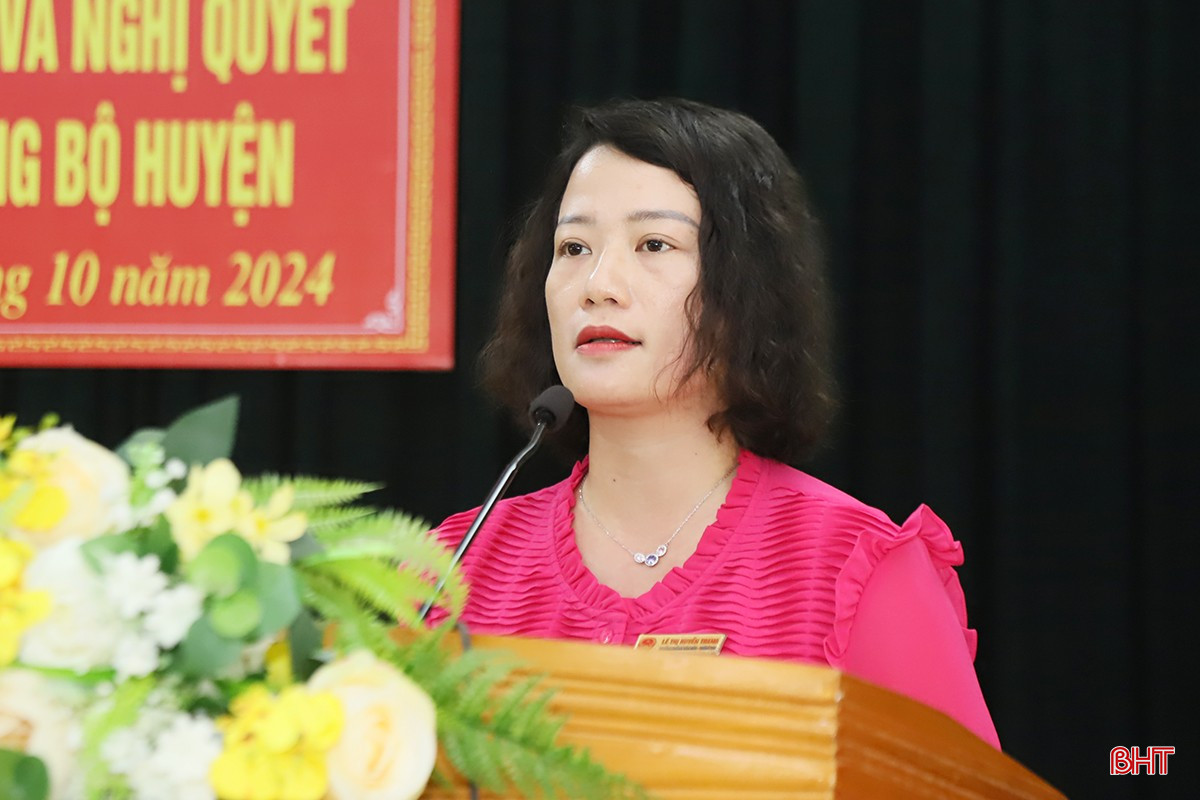 Phó Trưởng ban Tuyên giáo Tỉnh ủy Nguyễn Xuân Hải ghi nhận, biểu dương những kết quả đã đạt được của huyện Đức Thọ trong việc triển khai thực hiện các nghị quyết của BCH Đảng bộ tỉnh và BCH Đảng bộ huyện về chuyển đổi số, nâng cao chất lượng giáo dục, phát huy giá trị văn hoá, con người. Đồng chí đề cao cách làm của huyện Đức Thọ khi nhóm các nghị quyết có nội dung tương đồng để triển khai một cách hiệu quả, đồng bộ.