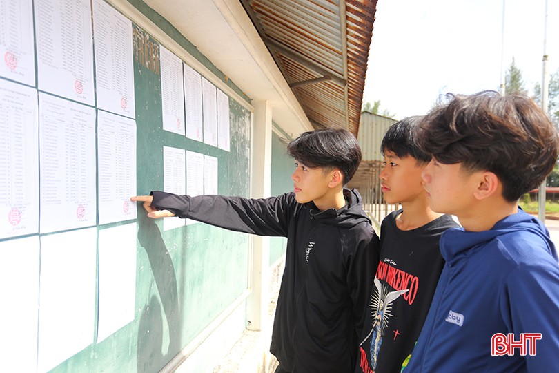 Thí sinh xem số báo danh tại điểm thi Trường THPT Thành Sen (TP Hà Tĩnh).