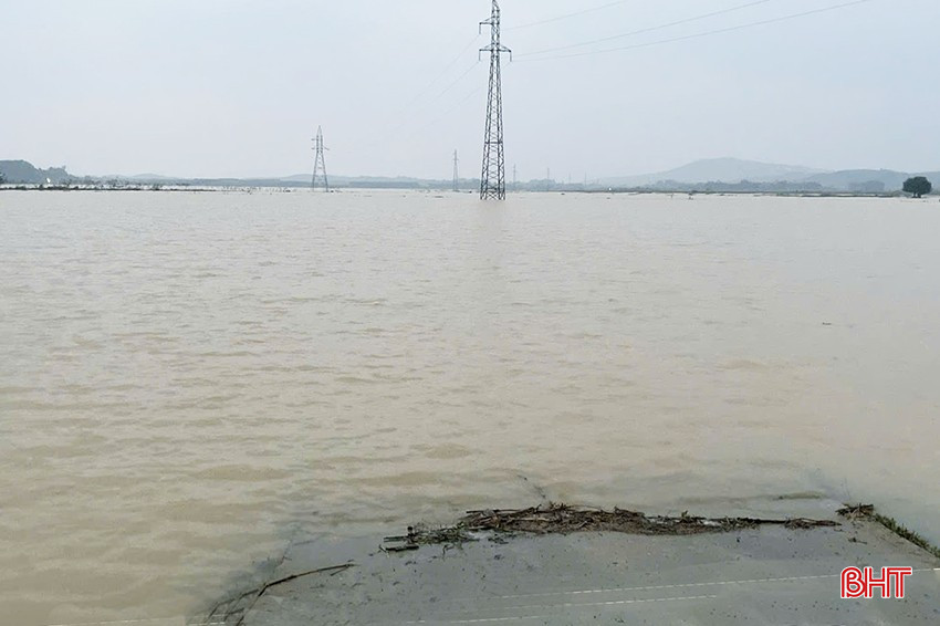 Mưa lũ hiện đang gây ngập cục bộ ở nhiều tuyến đường, công trình ở Hương Khê (Trong ảnh: Cầu tràn ông Bằng, xã Lộc Yên).