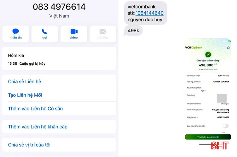 Đối tượng dùng cùng 1 số điện thoại để gọi điện và nhắn số tài khoản, số tiền khiến chị T. bị mất cảnh giác.
