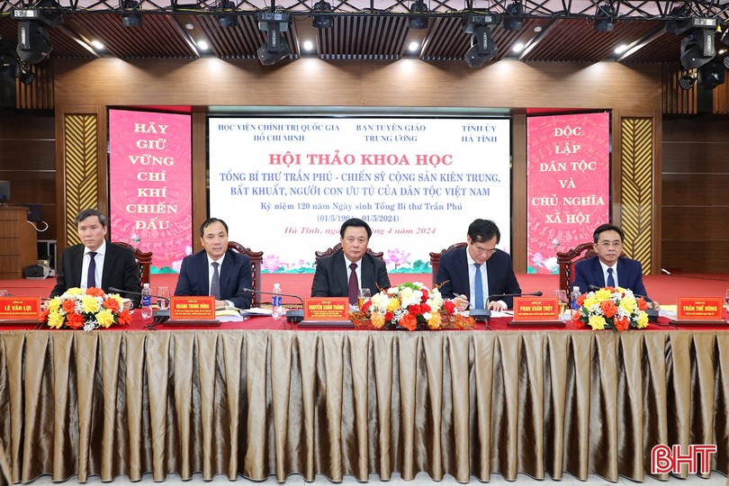 Nhân kỷ niệm 120 năm Ngày sinh Tổng Bí thư Trần Phú (1/5/1904 - 1/5/2024), chiều 16/4, tại Hà Tĩnh, Học viện Chính trị quốc gia Hồ Chí Minh, Ban Tuyên giáo Trung ương và Tỉnh ủy Hà Tĩnh phối hợp tổ chức hội thảo khoa học với chủ đề: “Tổng Bí thư Trần Phú - Chiến sỹ cộng sản kiên trung, bất khuất, người con ưu tú của dân tộc Việt Nam”.
