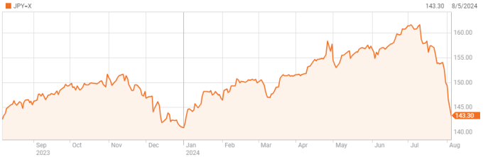 Chiều 5/8, giá yen Nhật có thời điểm tăng 2,3% so với đôla Mỹ, lên 142,2 JPY một USD. Đây là mức cao nhất kể từ tháng 1. Xu hướng mạnh lên của yen Nhật bắt đầu từ tháng 7 và tăng tốc từ tuần trước.