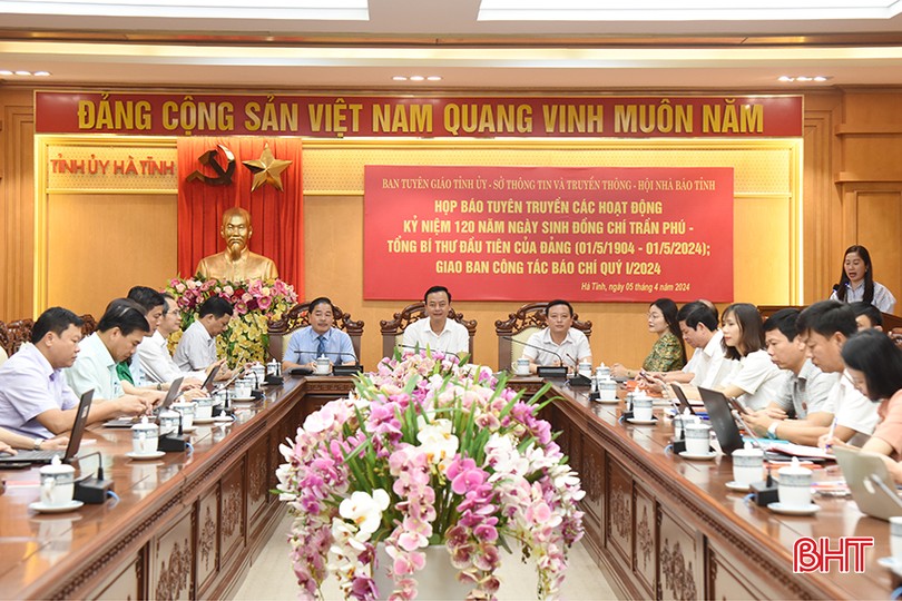 Ngày 5/4, Ban Tuyên giáo Tỉnh ủy phối hợp Sở TT&TT, Hội Nhà báo tỉnh tổ chức họp báo tuyên truyền các hoạt động kỷ niệm 120 năm Ngày sinh đồng chí Trần Phú - Tổng Bí thư đầu tiên của Đảng (1/5/1904 - 1/5/2024).