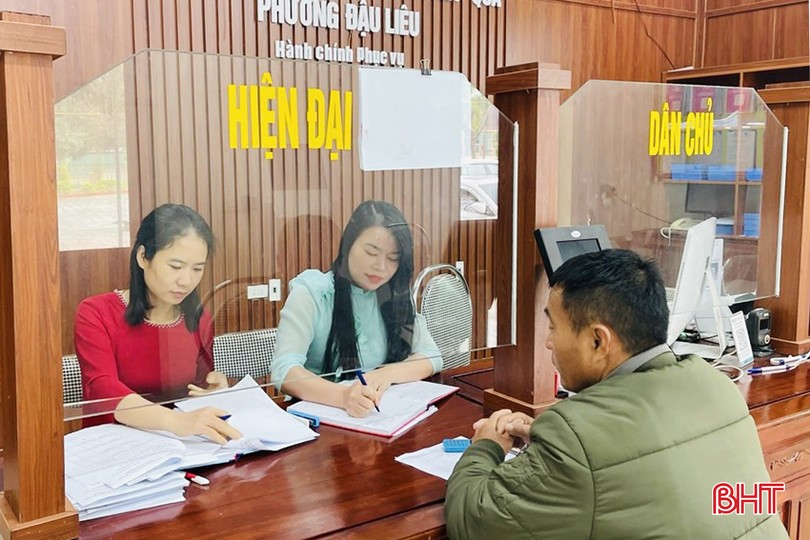 Cán bộ bộ phận tiếp nhận và trả kết quả một cửa phường Đậu Liêu (TX Hồng Lĩnh) mặc áo dài tại công sở trong ngày làm việc.