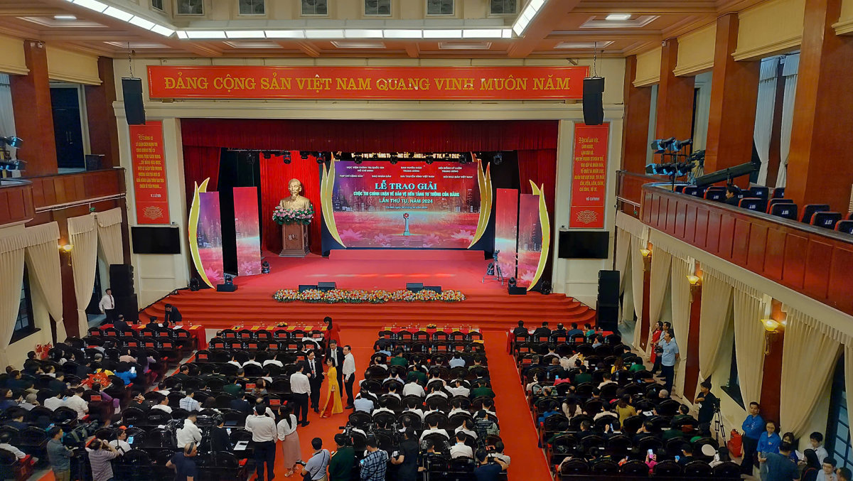 Toàn cảnh buổi lễ trao giảiNgày 20-10, Học viện Chính trị Quốc gia Hồ Chí Minh chủ trì, phối hợp Ban Tuyên giáo Trung ương, Hội đồng Lý luận Trung ương, Tạp chí Cộng