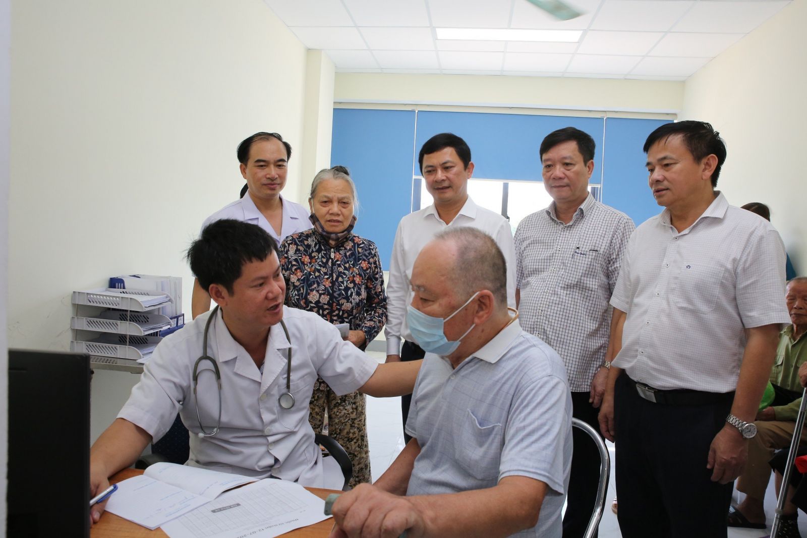 T.s Nguyễn Đình Anh - Phó Vụ trưởng, Vụ tổ chức cán bộ - Bộ Y tế, Phó chủ tịch UBND tỉnh Hà Tĩnh Lê Ngọc Châu và bác sỹ Nguyễn Minh Đức – Giám đốc Sở Y tế Hà Tĩnh động viên các đối tượng chính sách đến khám tại huyện Nghi Xuân.
