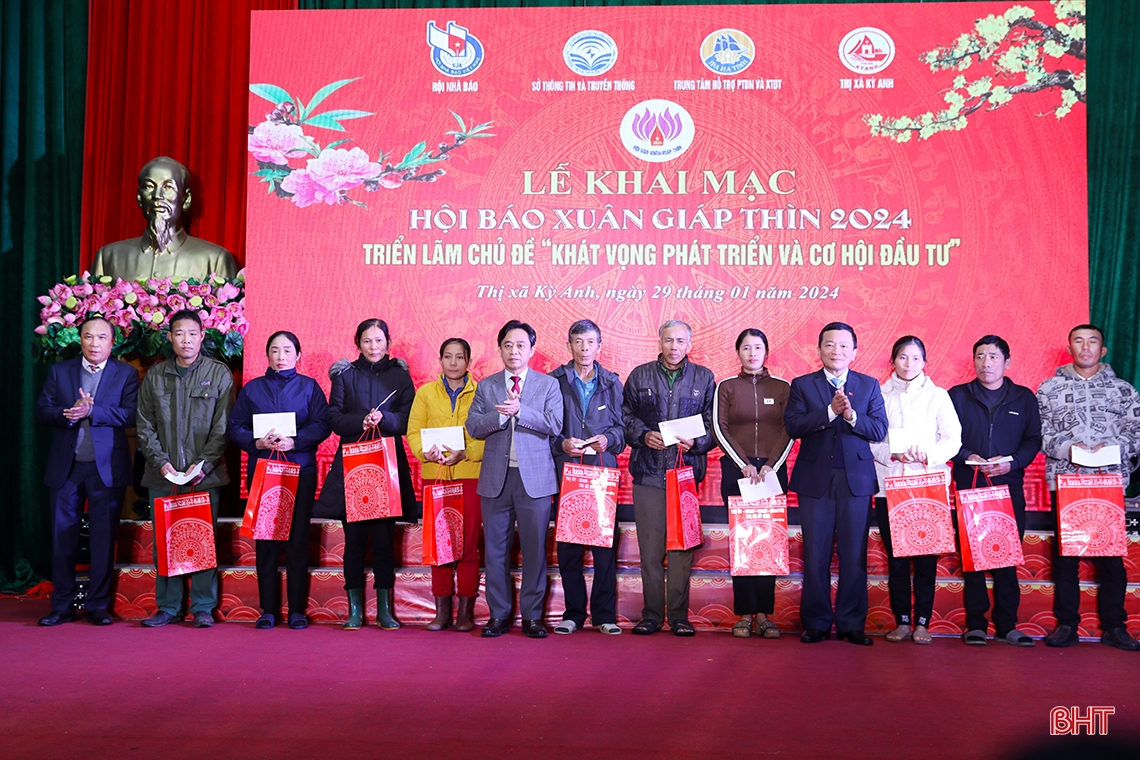 Tại Hội báo Xuân, các cơ quan thông tấn báo chí Trung ương và địa phương hoạt động trên địa bàn tỉnh, nhà tài trợ đã trao hơn 300 suất quà trị giá hơn 150 triệu đồng cho hộ dân có hoàn cảnh đặc biệt khó khăn, học sinh nghèo vượt khó học giỏi của TX Kỳ Anh.