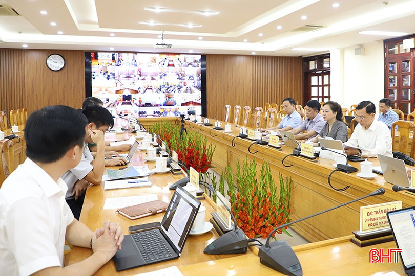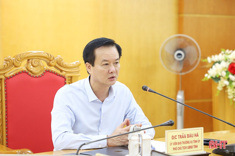 Phó Chủ tịch UBND tỉnh Trần Báu Hà điều hành điểm cầu Hà Tĩnh.