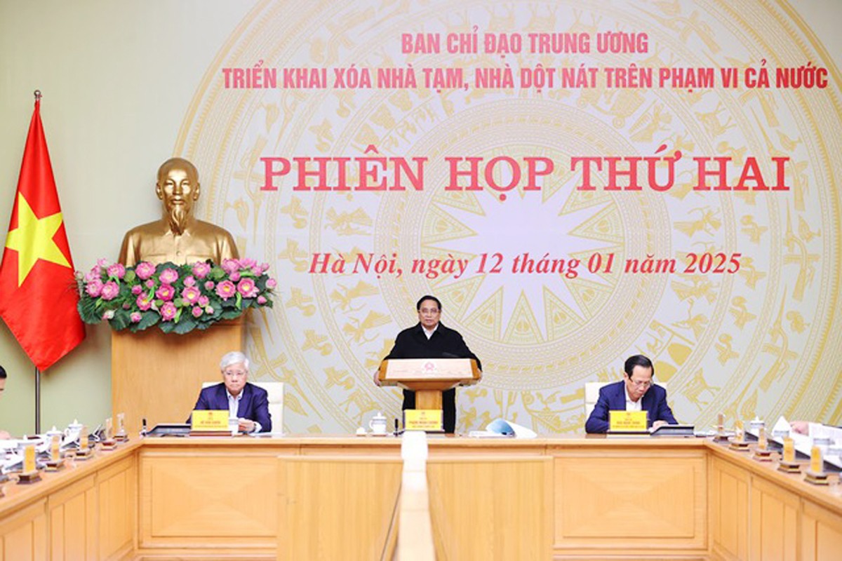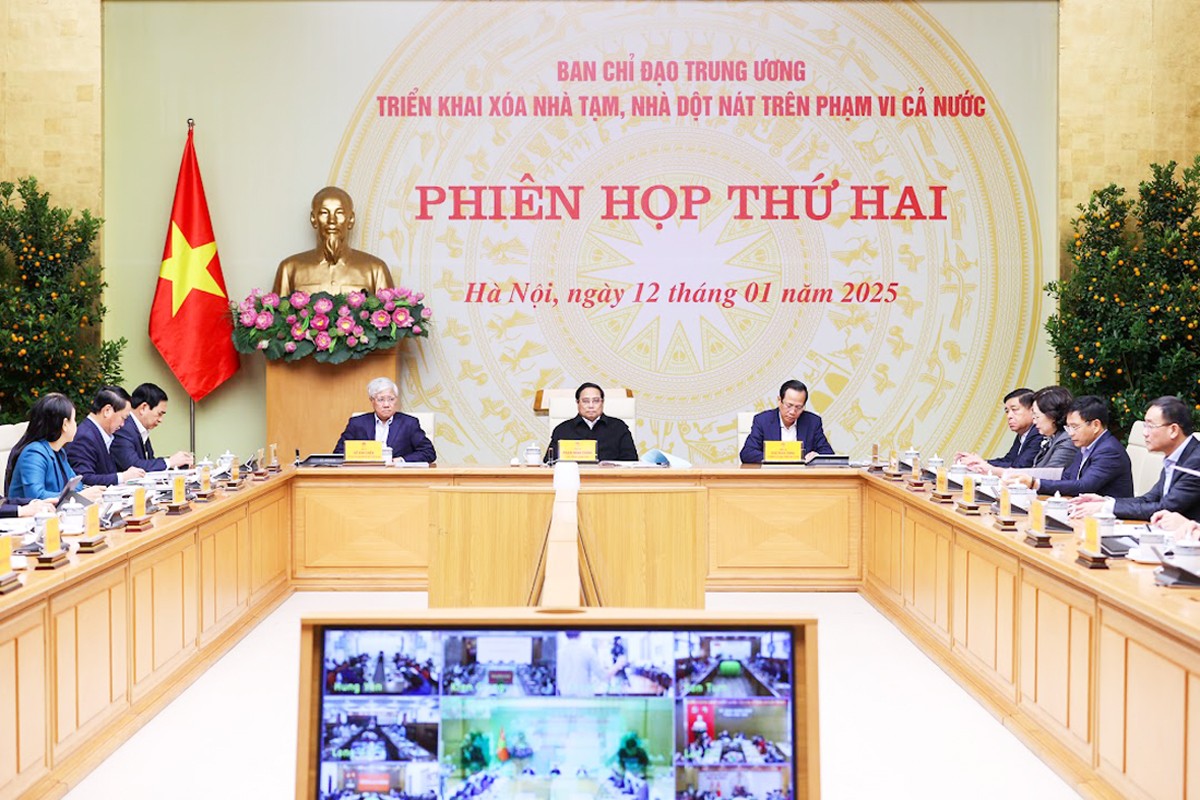 Chiều 12/1, Ban Chỉ đạo Trung ương triển khai xoá nhà tạm, nhà dột nát trên phạm vi cả nước tổ chức phiên họp thứ hai trực tuyến toàn quốc. Thủ tướng Chính phủ Phạm