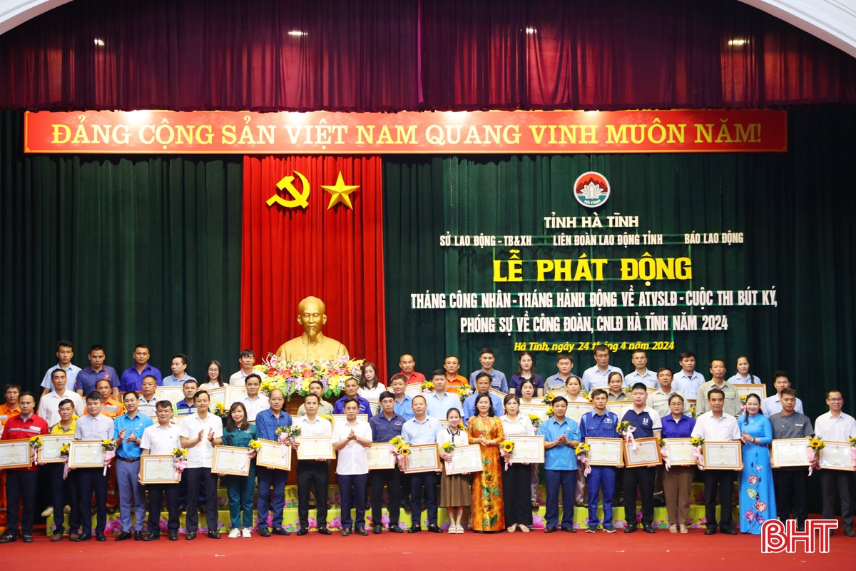 Sáng 24/4, UBND tỉnh tổ chức lễ phát động Tháng hành động về an toàn, vệ sinh lao động, Tháng Công nhân và cuộc thi bút ký, phóng sự về công đoàn, công nhân, lao động Hà Tĩnh; tôn vinh công nhân, lao động tiêu biểu năm 2024.
