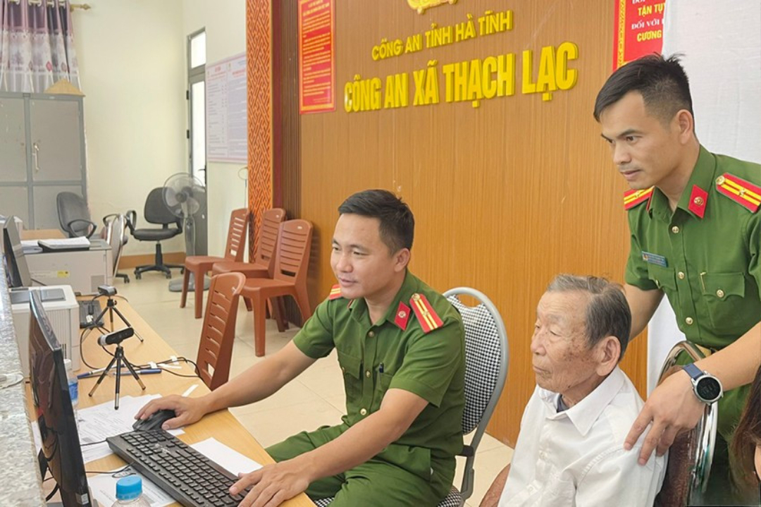 Đối với các trường hợp đảng viên cao tuổi, sức khoẻ yếu, không thể đi lại, công an các xã đã tổ chức các tổ công tác lưu động, bố trí máy móc, thiết bị đến tận nhà để phục vụ.
