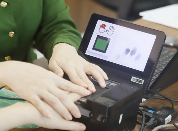 Công dân tiến hành thủ tục thu nhận vân tay để cấp thẻ căn cước.