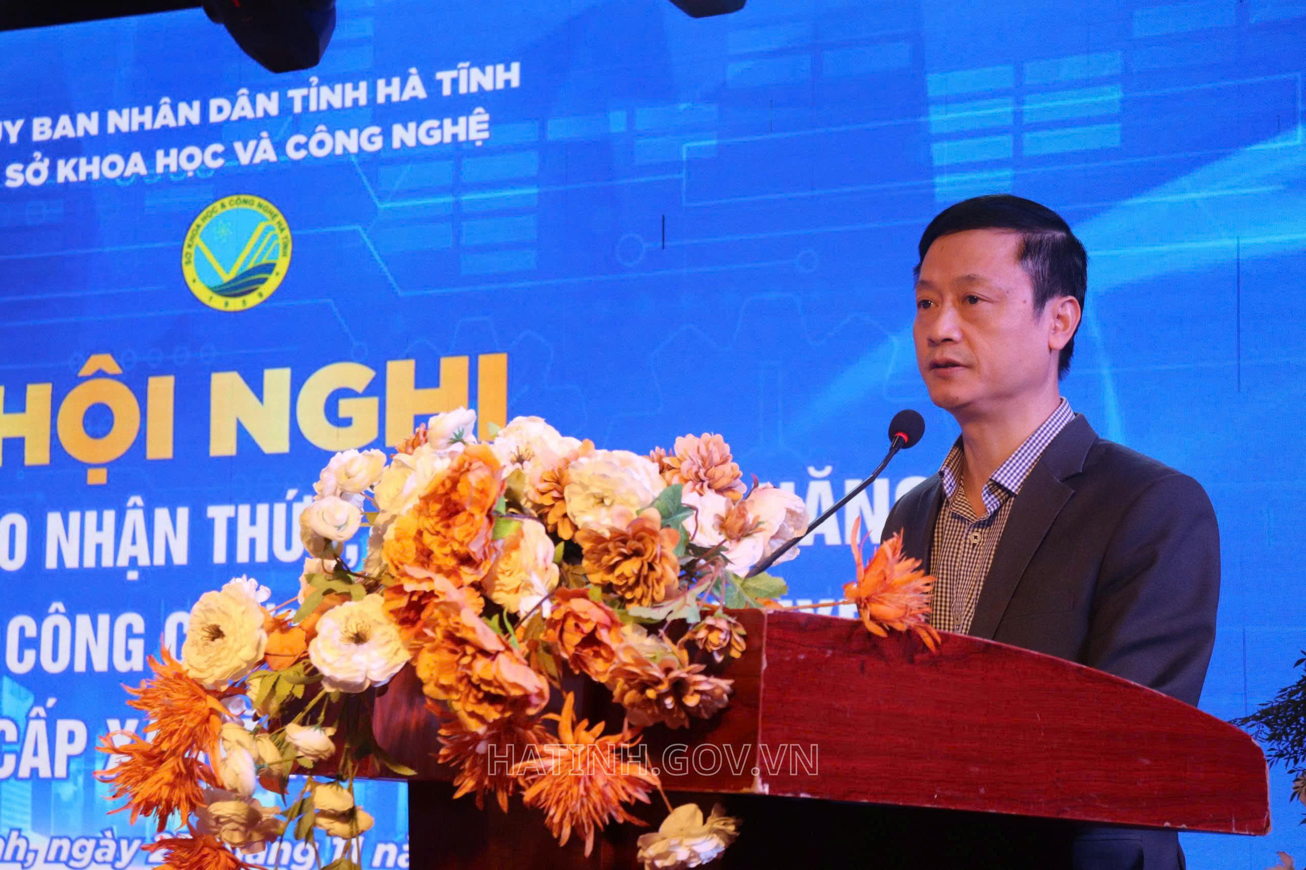 Đồng chí Đặng Văn Đức - Trưởng phòng Chuyển đổi số, Sở Khoa học và Công nghệ phát biểu tại Lễ khai giảng khóa đào tạo
