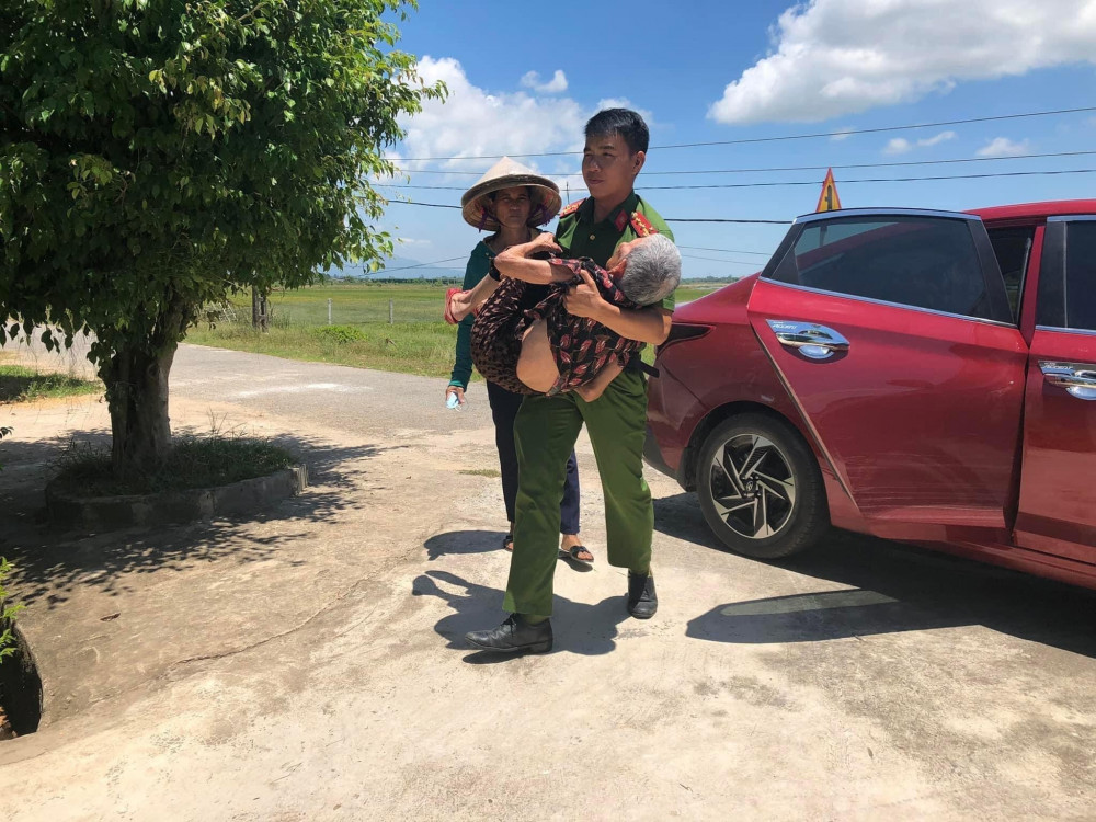 Cán bộ chiến sỹ CAX Thạch Ngọc, huyện Thạch Hà hỗ trợ người già yếu tiến hành thủ tục cấp CCCD