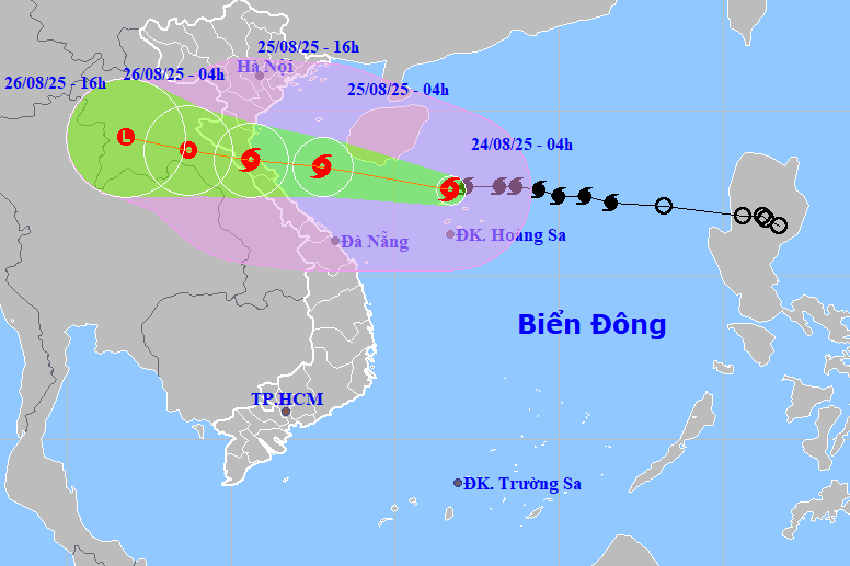 Theo bản tin của Trung tâm Dự báo khí tượng thủy văn quốc gia, hồi 4 giờ ngày 24/8, vị trí tâm bão ở vào khoảng 17,6 độ Vĩ Bắc; 111,7 độ Kinh Đông, trên vùng biển phía Bắc đặc khu Hoàng Sa, cách Nghệ An khoảng 660km về phía Đông Đông Nam, cách Hà Tĩnh khoảng 640km về phía Đông. Sức gió mạnh nhất vùng gần tâm bão mạnh cấp 12 (118-133km/giờ), giật cấp 15; di chuyển theo hướng Tây với tốc độ khoảng 20km/h.