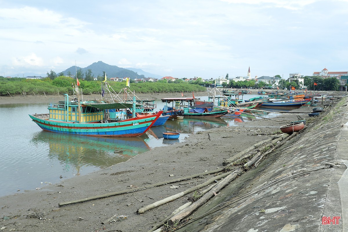 Khu vực cảng cá và khu neo đậu tránh trú bão Cửa Sót có 188 tàu cá của ngư dân trong và ngoài tỉnh đang neo đậu.