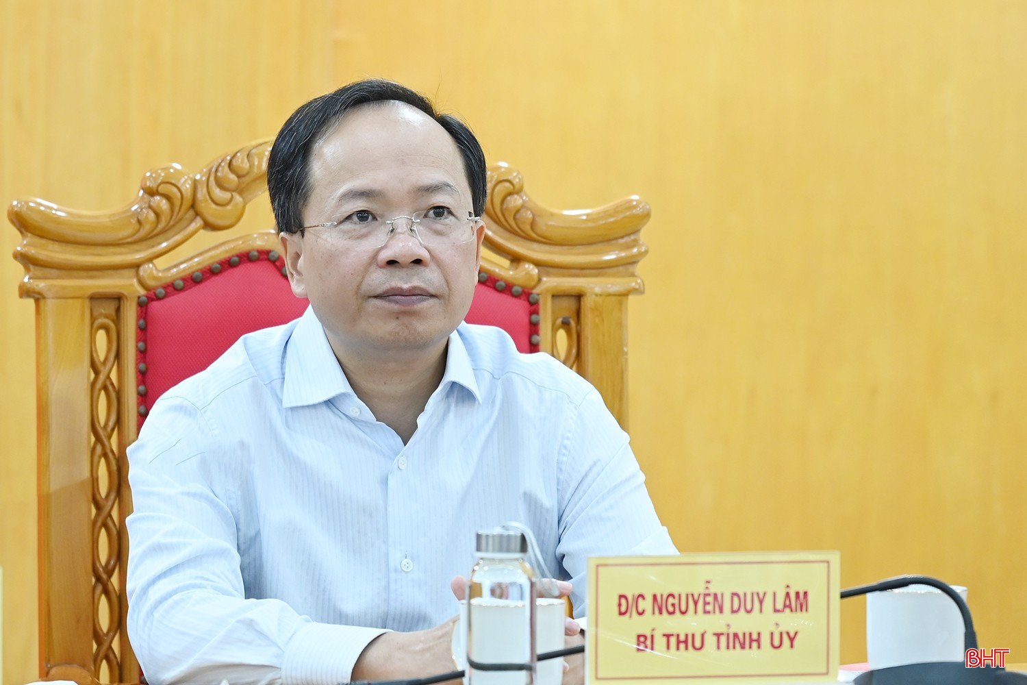 Bí thư Tỉnh ủy Nguyễn Duy Lâm báo cáo tại cuộc họp.