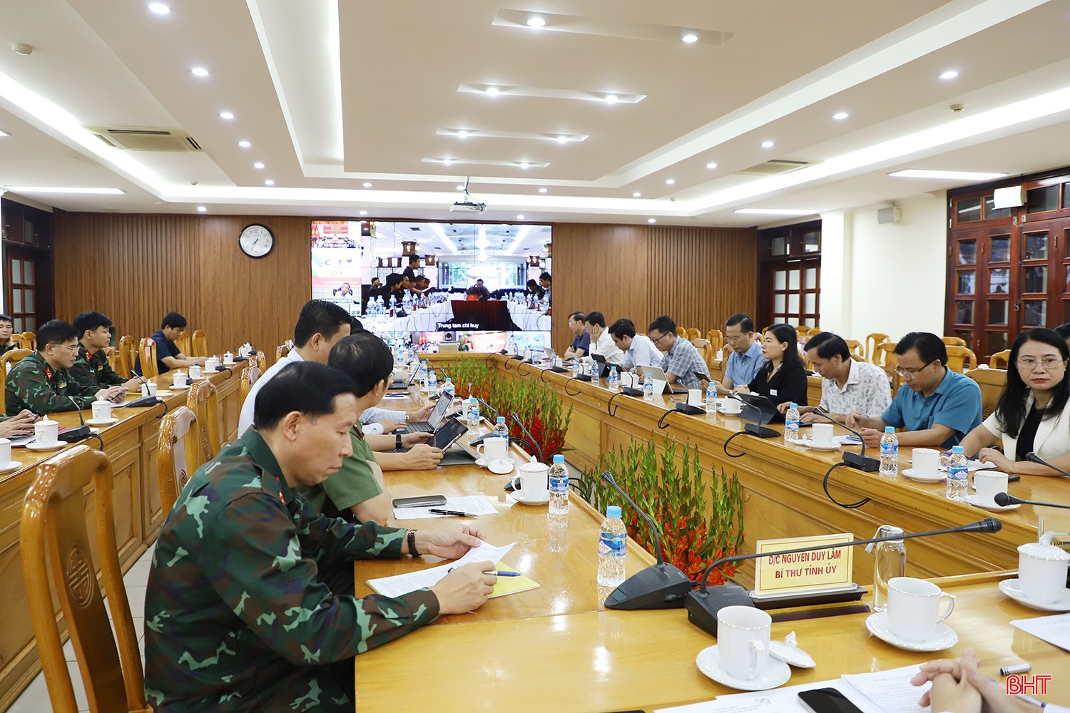 Bí thư Tỉnh ủy Nguyễn Duy Lâm và Phó Chủ tịch Thường trực UBND tỉnh Nguyễn Hồng Lĩnh điều hành tại điểm cầu Hà Tĩnh.