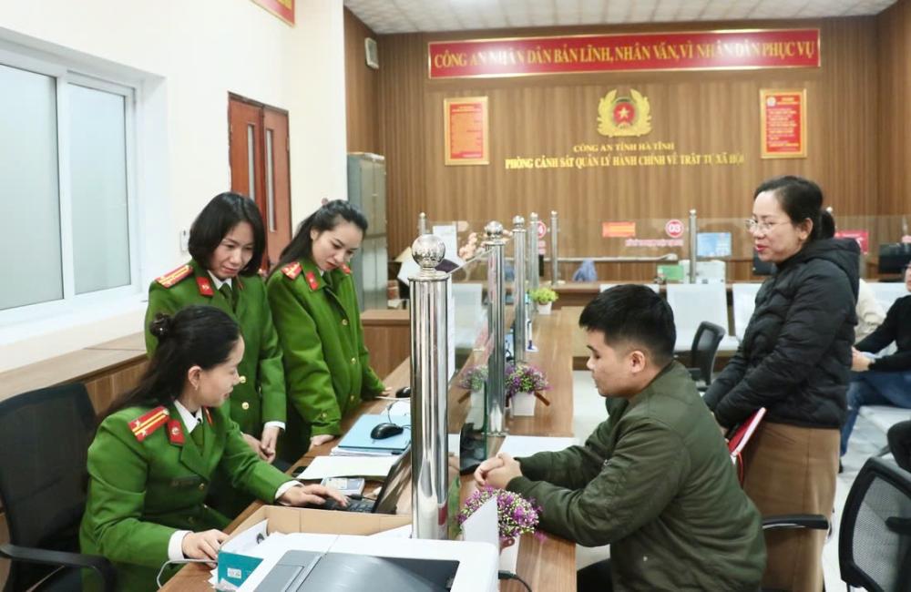 Tại bộ phận tiếp nhận hồ sơ, cán phòng Cảnh sát Quản lý hành chính về TTXH, Công an tỉnh Hà Tĩnh tiến hành kiểm tra thẻ CCCD, thẻ Căn cước, số định danh của người đại diện cho cơ quan, tổ chức bằng thiết bị chuyên dụng, nhập thông tin của người đại diện theo pháp luật, người đứng đầu gắn với tài khoản định danh diện tử của cơ quan, tổ chức và thông tin tổ chức. Sau đó, thực hiện kiểm tra biểu mẫu TK02 đúng với quy định và các điều kiện để bảo đảm việc tiếp nhận yêu cầu đăng ký tài khoản định danh điện tử tổ chức là chính xác.