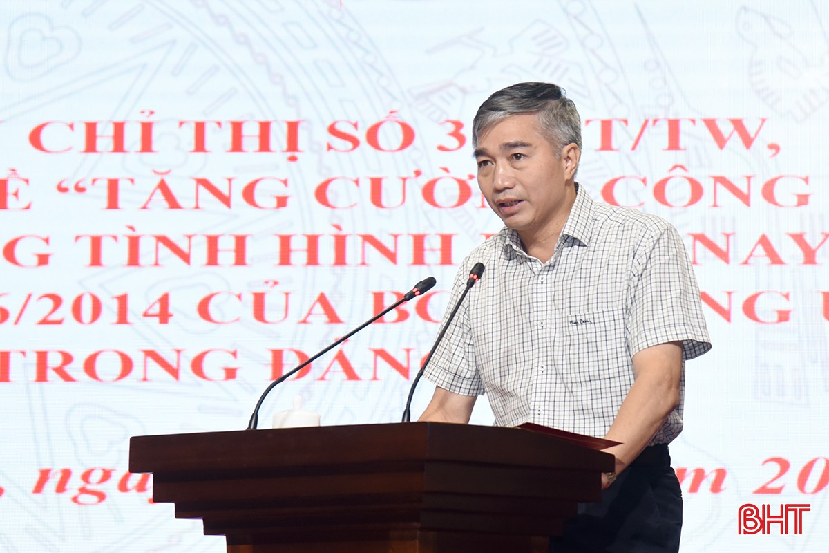 Đồng chí Nguyễn Văn Định - Phó Cục trưởng Cục bảo vệ chính trị nội bộ (Ban Tổ chức Trung ương) mong muốn từ thực tiễn triển khai, thực hiện nghị quyết, quy định, chỉ thị của Trung ương, các cấp ủy địa phương, đơn vị ở Hà Tĩnh tiếp tục đề xuất, kiến nghị giải pháp, thẳng thắn trao đổi những vấn đề còn bất cập để cơ quan chuyên môn tổng hợp ý kiến, hoàn thiện các nội dung, tiếp tục triển khai công tác bảo vệ chính trị nội bộ sát hợp tình hình bối cảnh mới.