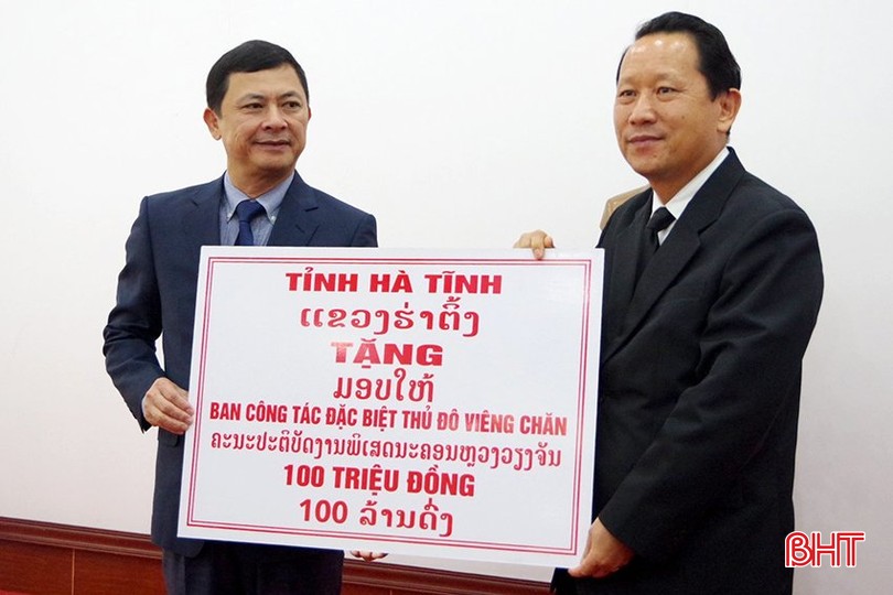 UBND tỉnh Hà Tĩnh trao 100 triệu đồng hỗ trợ Ban Công tác đặc biệt Thủ đô Viêng Chăn.