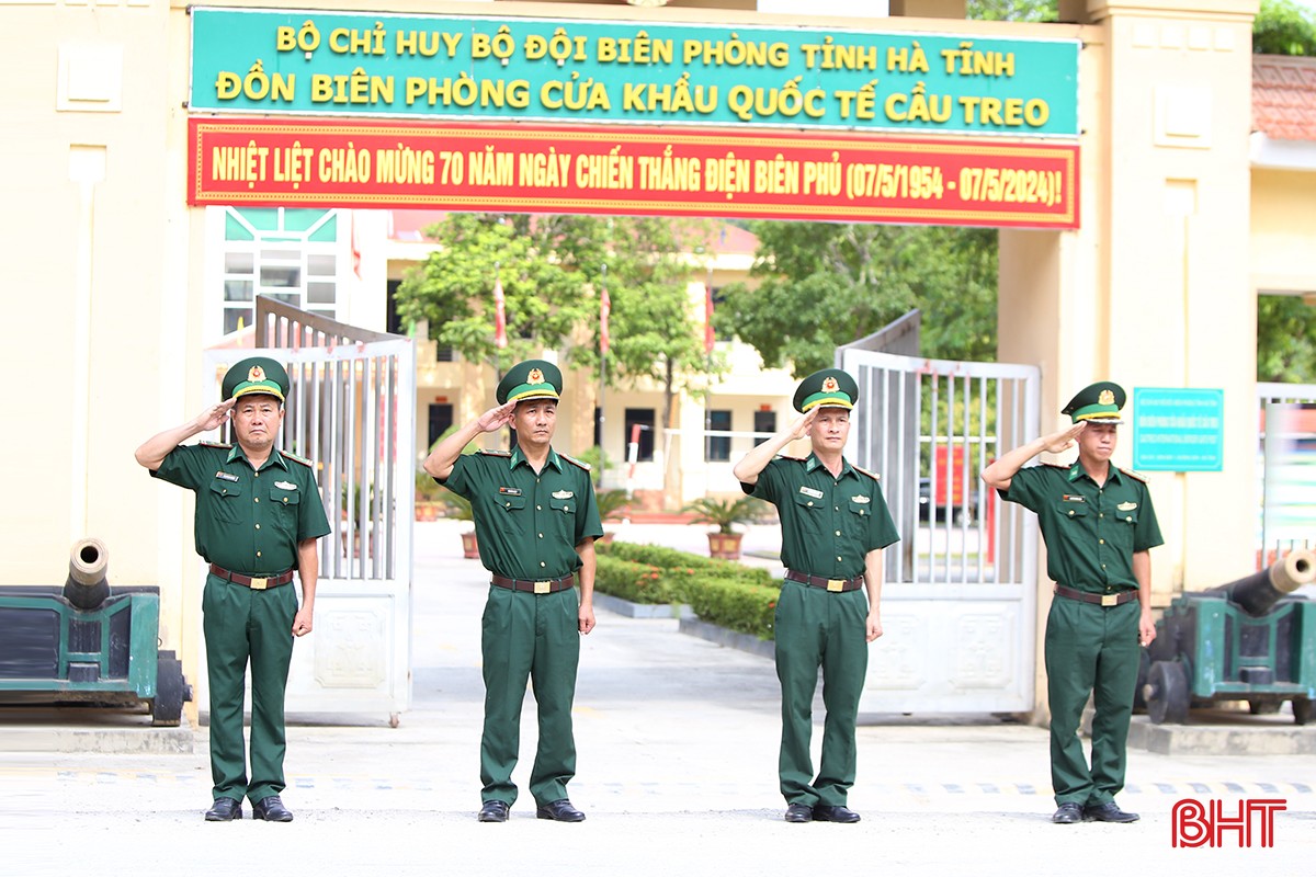 Cán bộ, chiến sỹ Đồn Biên phòng Cửa khẩu Quốc tế Cầu Treo chào đón các liệt sỹ.